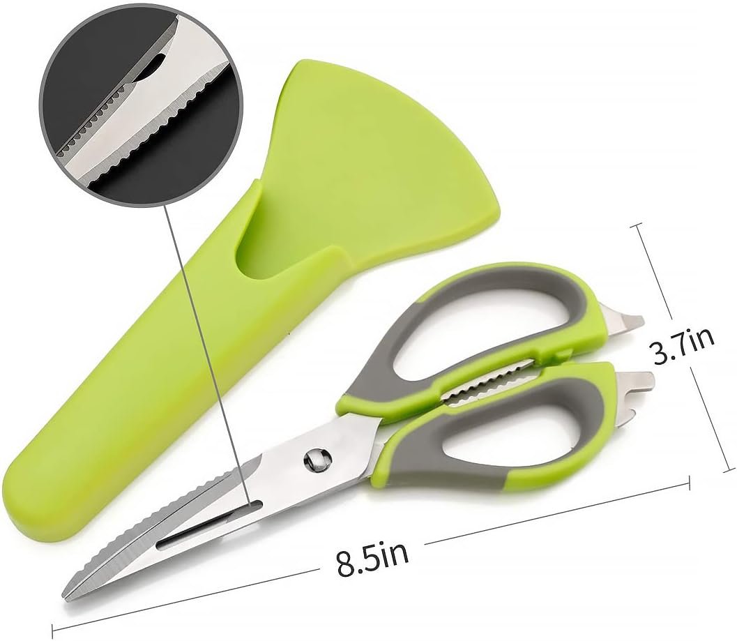 Crafted from premium-quality stainless steel, the blades are sharp, durable, and resistant to rust and corrosion. They provide smooth, precise cuts through meat, poultry, fish, vegetables, herbs, and packaging materials. The micro-serrated edges help prevent slipping, ensuring better control and safer cutting during use.