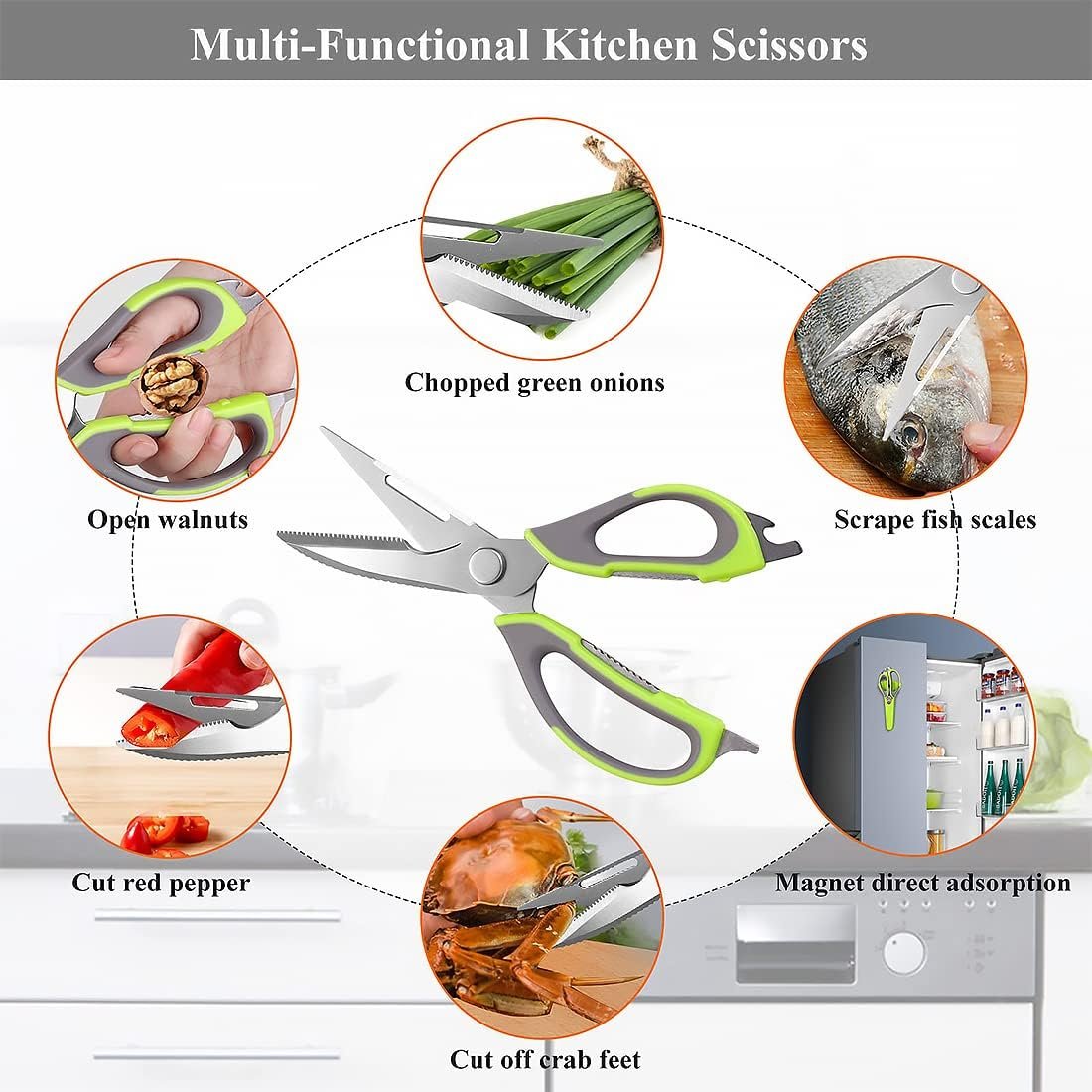 This 7-in-1 kitchen scissors set includes multiple built-in functions such as food cutting shears, bottle opener, nut cracker, vegetable cutter, scale scraper, packaging opener, and herb stripper. The multi-purpose design eliminates the need for several separate tools, keeping your kitchen organized and efficient.